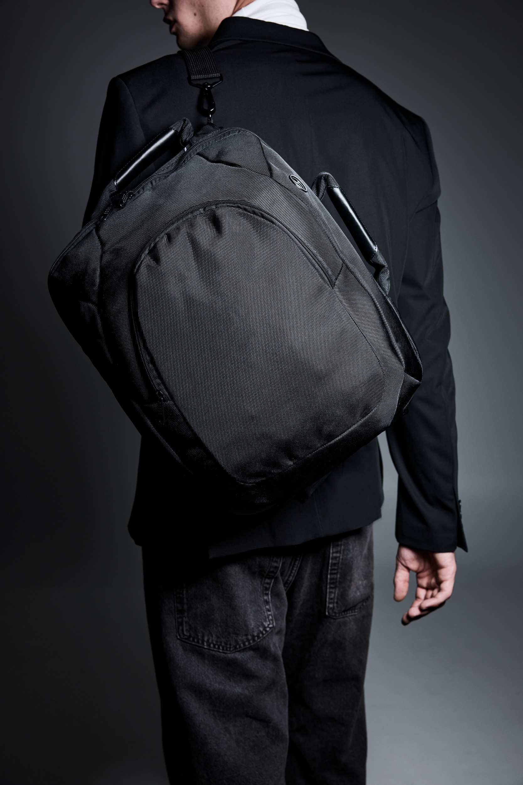 Sac ordinateur portable / porte-documents à double usage pouvant se transformer en sac à dos. Polyester recyclé 1680D, Bretelles cachées, empiècement dos matelassé, attache fixation trolley au dos, bandoulière ajustable et amovible avec confort d'épaule, poignées renforcées et matelassées, poche frontale multifonctions, compartiment central entièrement matelassé pour ordinateur jusqu'à 15" et documents, ouverture pour écouteurs, porte-clefs.