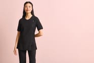 100% polyester. Tunique pour esthétique ou spa avec manches courtes. Système de fermeture zippée asymétrique sur le devant. Fentes latérales. Coutures princesse. Facile d'entretien.