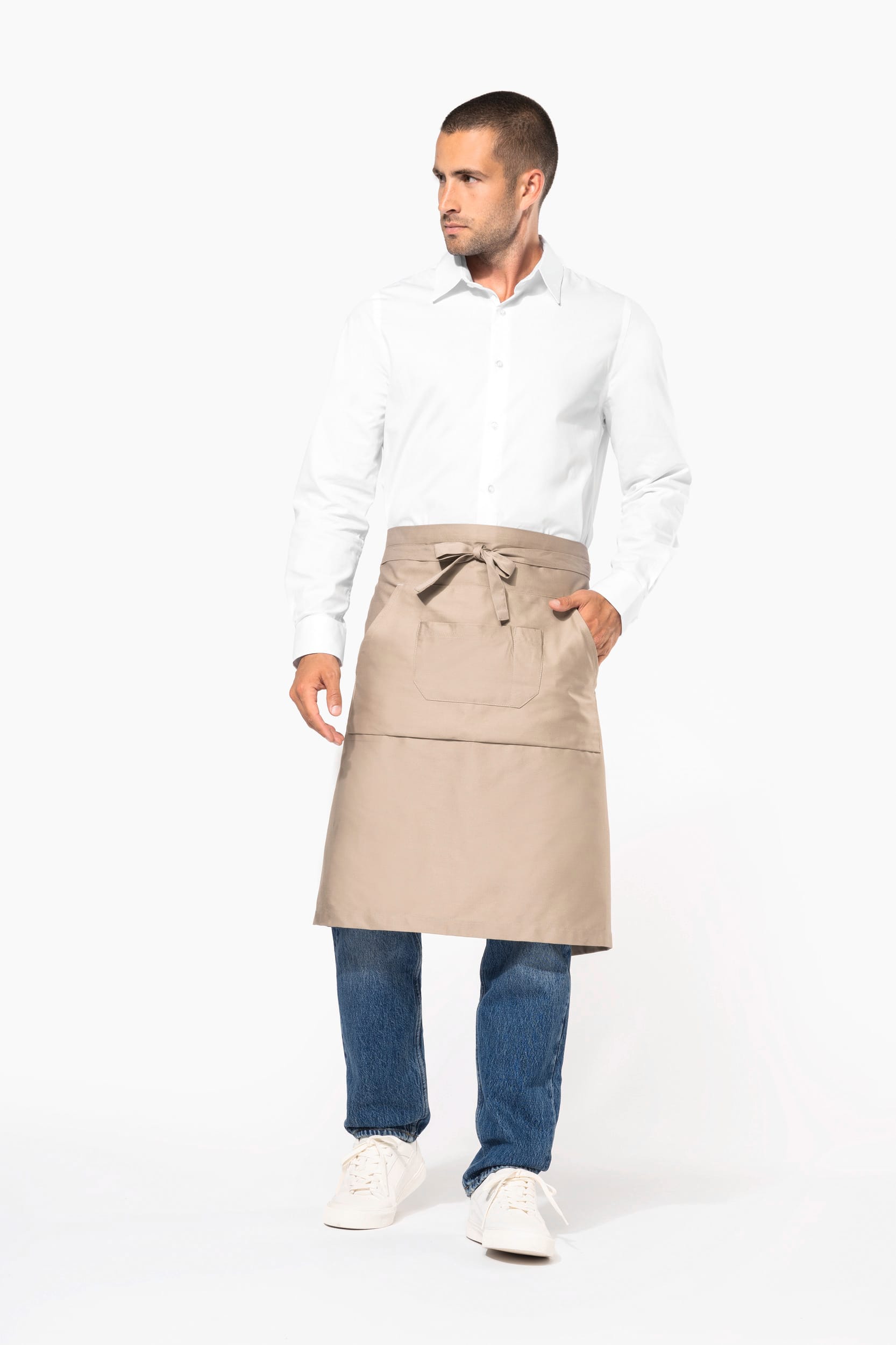 65% polyester / 35% katoen (Denim 65 % katoen / 35 % polyester). 2 zakken: 1 kangoeroezak en 1 zak verdeeld in 2 vakken. Afmetingen: H 62,5 cm - B 90 cm. Zak: H 24 cm - B 27,50 cm / 46 cm. Denim kleur: dit product kreeg een speciale behandeling om het er verouderd te laten uitzien. Dit ambachtelijke procedé maakt dat er kleurverschillen zijn tussen de producten, waardoor elk stuk uniek is.