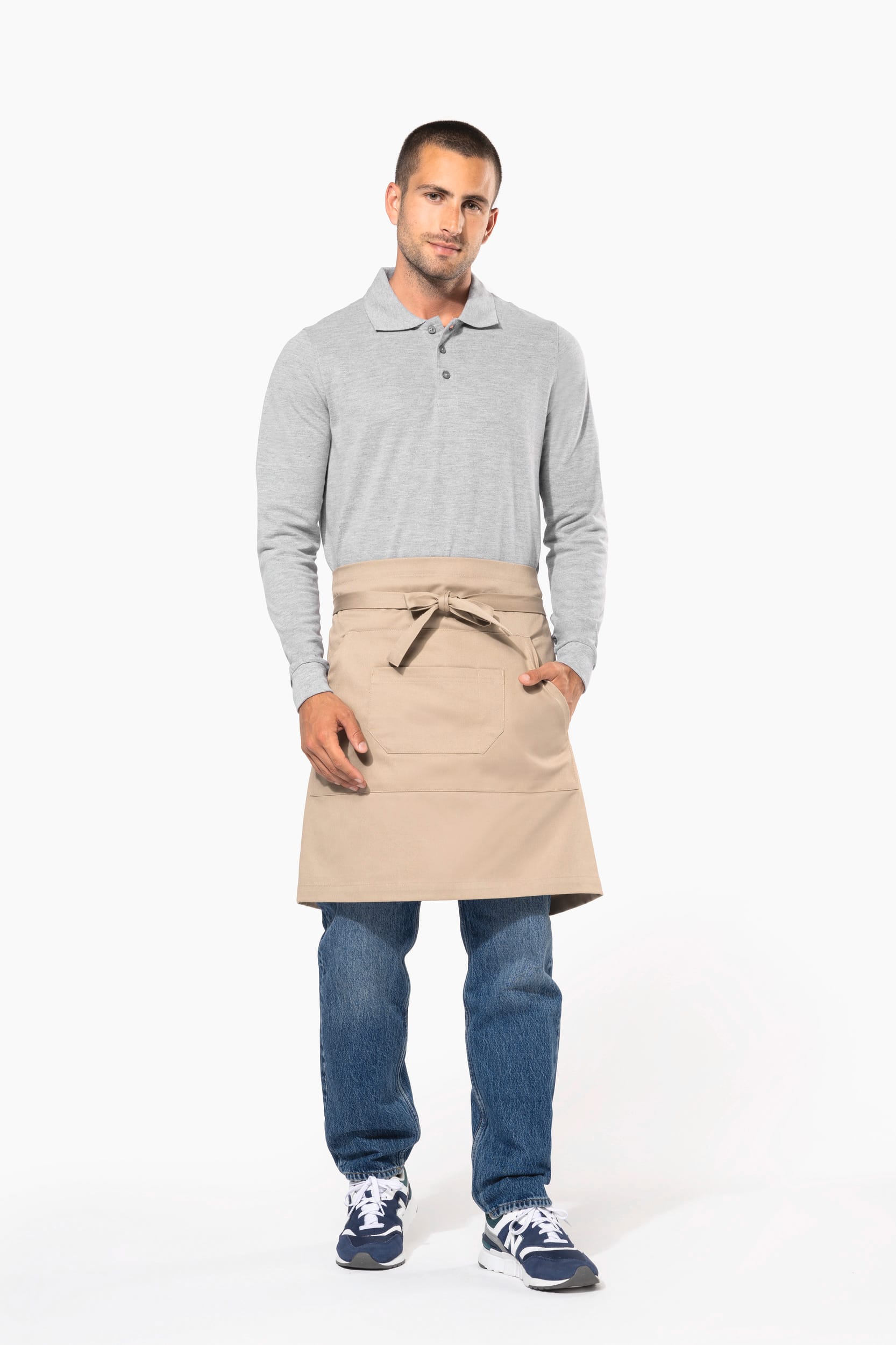 100% katoen. Thuis wassen op 60 °C. 2 zakken: 1 kangoeroezak en 1 zak verdeeld in 2 vakken. Afmetingen: H 50 cm - B 90 cm. Zak: H 24 cm - B 27,50 cm / 46 cm. Denim kleur: Dit product kreeg een speciale behandeling om het er verouderd te laten uitzien. Dit ambachtelijke procedé maakt dat er kleurverschillen zijn tussen de producten, waardoor elk stuk uniek is.